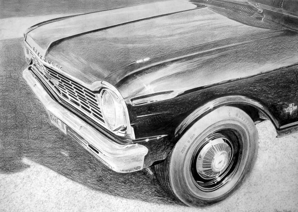 This particular assignment was about enlarging a photo from a picture from a magazine, so I picked a picture of an old Chevy, cropped it to match the proportions of the assignment, and drew it enlarged.