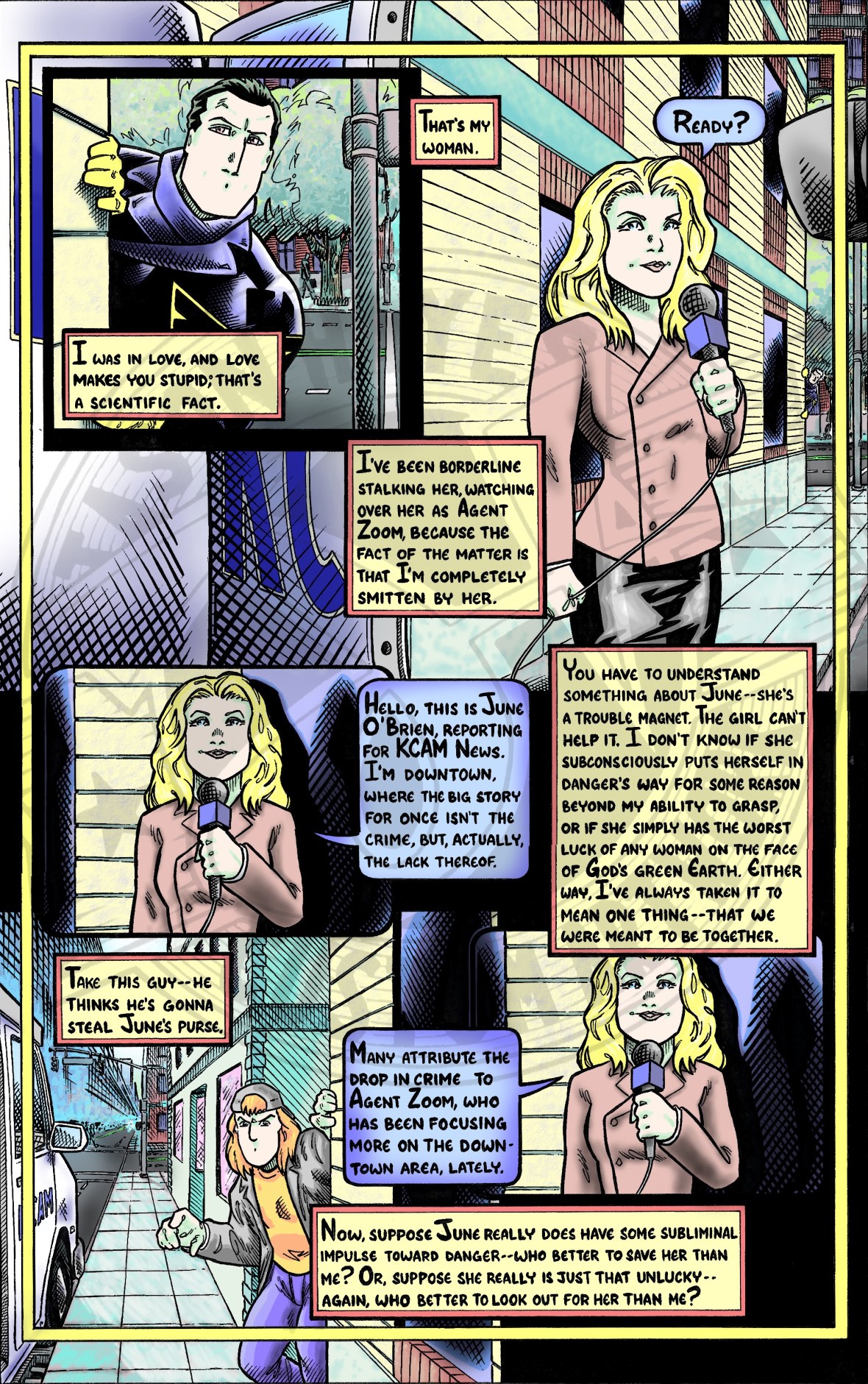 So I started drawing it out, but I was working full time, going to school full time, dealing with a lot of major life changes, and working on other art projects for people to try to get paid, so getting pages churned out was sort of a side project. For a long, long time, the pages I had were stored away in black and white. Then, recently, I pulled them out, and started using them as practice for coloring comics on a computer. So I’ll post those here on my website as I finish them, along with pages of whatever other stories I happen to be working on. Maybe at one point this page will just look like one big anthology book!