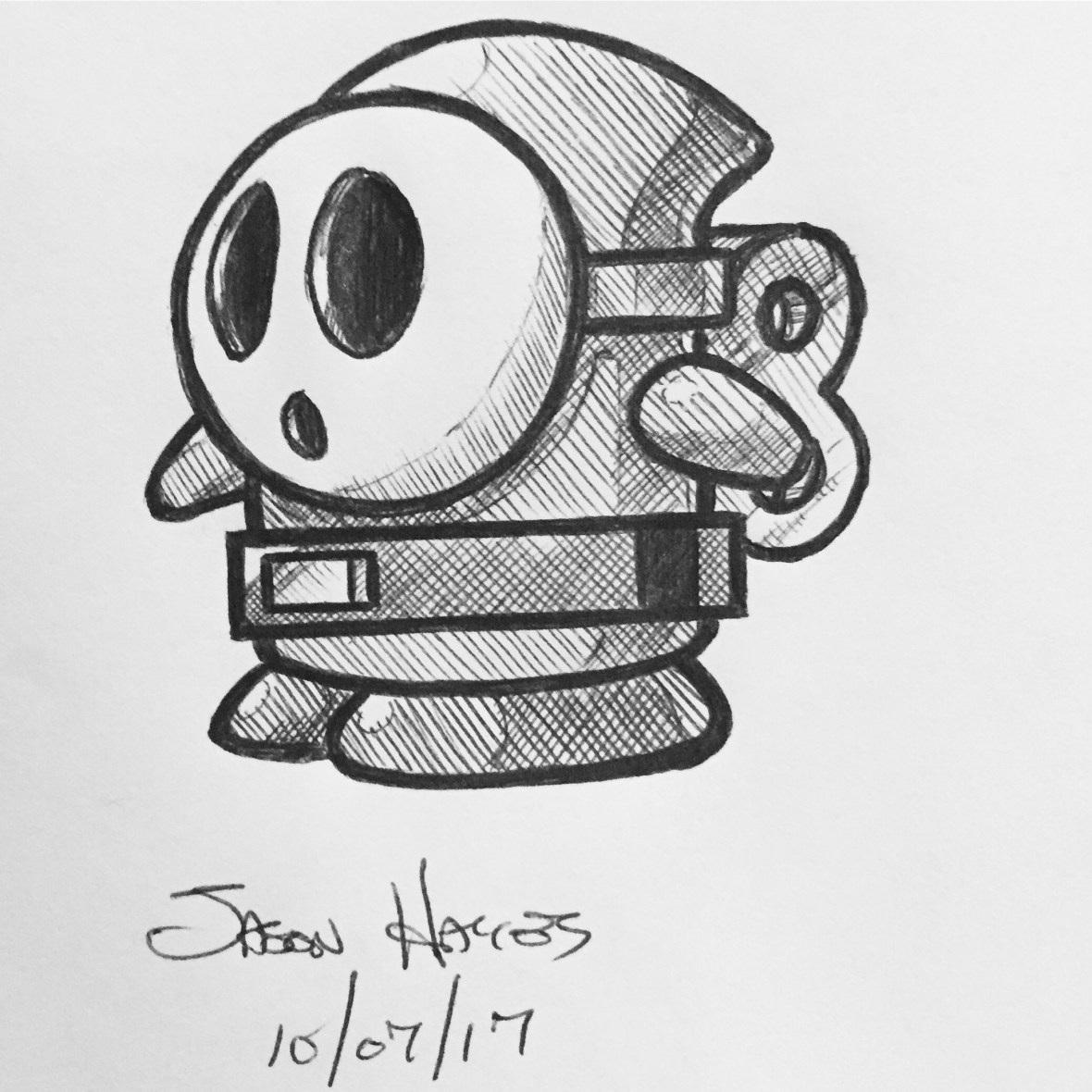 #inktober #inktober2017 #DaySeven #shy #shyguy #Nintendo #supermariobros #bicpen #drawing #nopencil