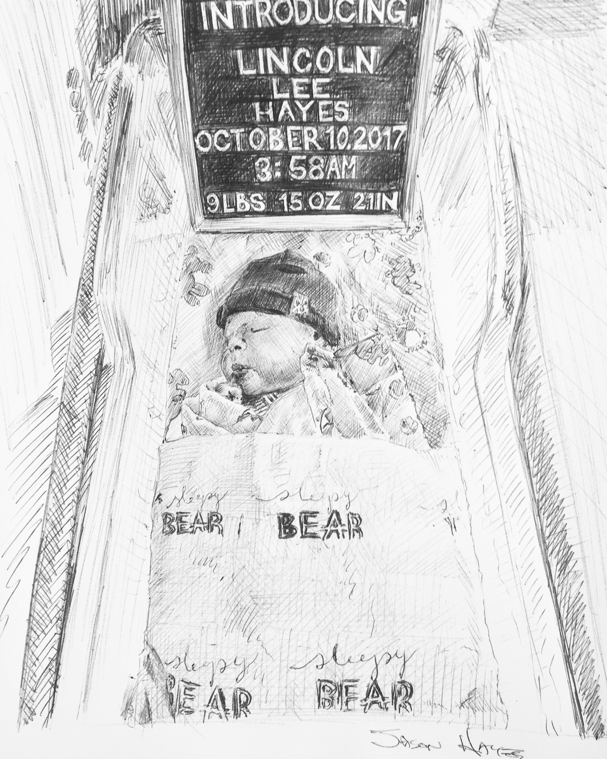 You’ll have to excuse me for not posting anything for Inktober in a few days, but, you see, my son was being born! Now I’m trying to play catch up. The prompt for Day Ten was, “Gigantic.” This could not have been more perfect. My son was born , weighing a whopping 9 lbs, 15 oz.! I love this little guy so much!