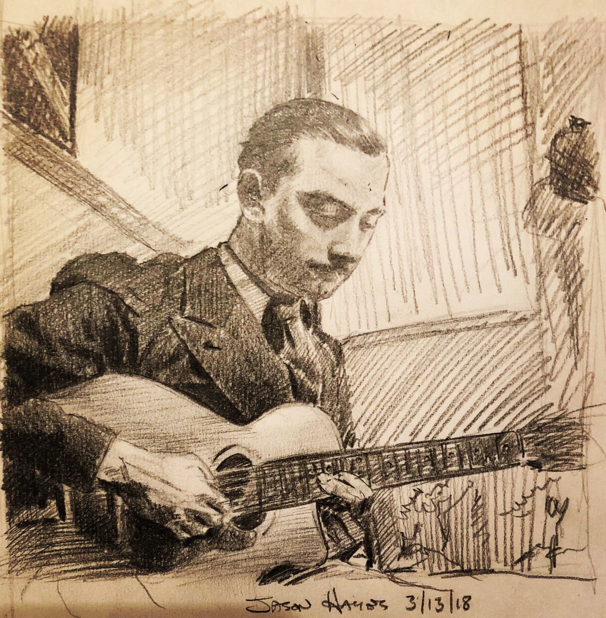 Did a relatively quick sketch tonight of one of my favorite guitarists, Django Reinhardt.