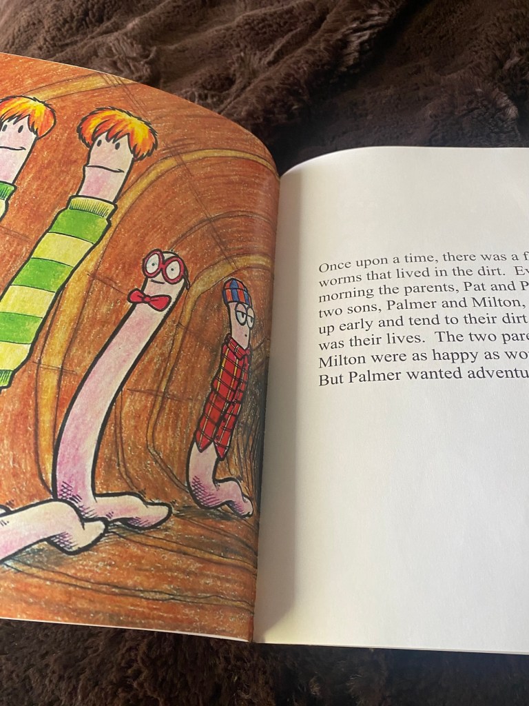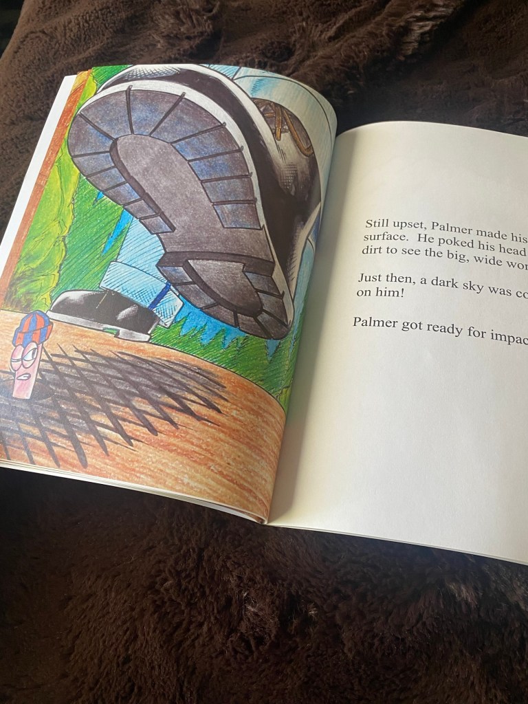 Palmer tells the story of a young worm who wants his life to be more than just dirt, so he heads out into the world in search of adventure…but what he finds might be more of an adventure than he bargained for.