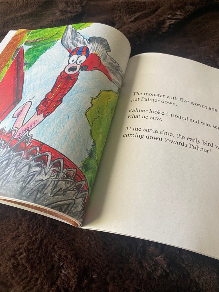 Fast forward through many major life changes, and now she’s my lovely wife, we have a small gang of wild children, and we’re revisiting our first collaboration. We’re trying to put Palmer The Worm out there into the universe.